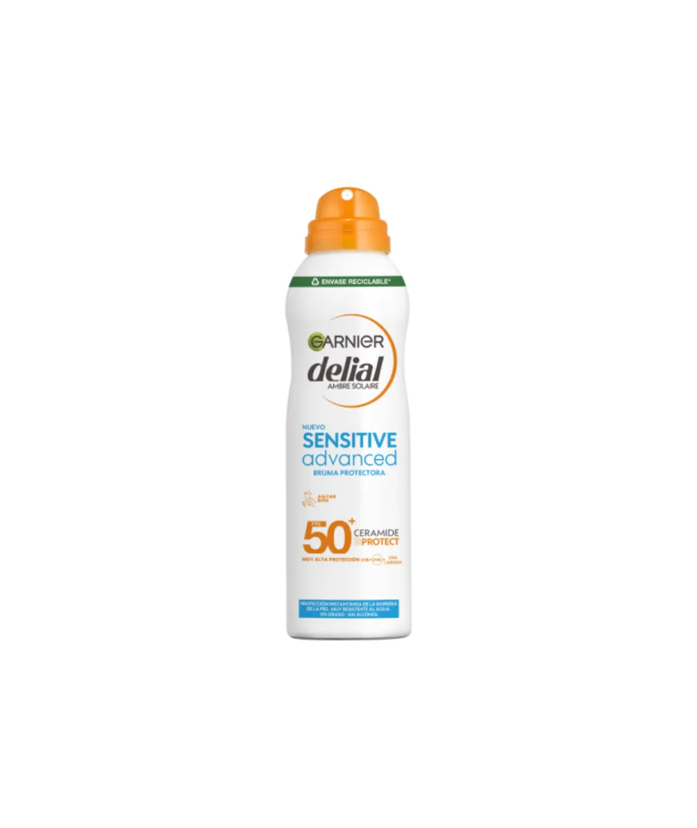 Garnier Delial Bruma Solar Protectora Senstive Advanced Con Ceramidas. Muy Alta Protección Contra Los Rayos Uvb, Uva, Y Uva Largos, Previniendo Instantaneamente Quemaduras Solares Y Danos A Largo Plazo En La Piel. Formulada Con Tecnologia Ceramide Protect Que Mantiene La Piel Hidratada Y La Funcion Barrera De La Piel Intacta. 0% Pegajoso, 0% Graso.