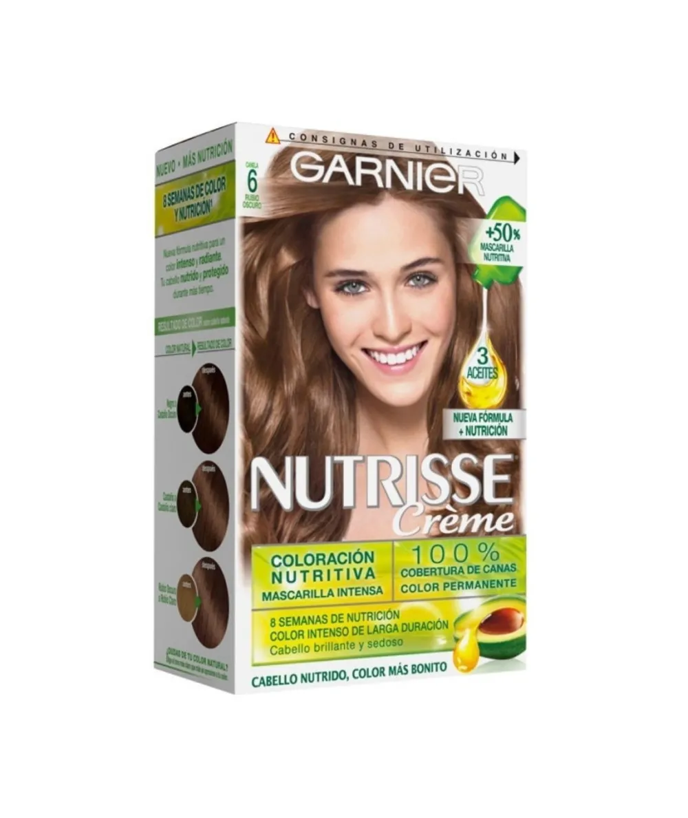 Pelo Nutrido, Color Mas Bonito. Coloración Permanente Y Nutritiva. Aporta Color A Tu Cabello Mientras Que Lo Impregnan De 4 Aceites Distintos: De Aguacate, Oliva, Grosella Negra Y Karite. Cobertura Total De Canas, Cubre Incluso Las Mas Rebeldes. Tu Cabello Queda Sedoso Y Brillante. Garnier Nutriesse Creme Ofrece Una Amplia Variedad De Colores Intensos Y Radiantes. Imposible No Encontrar El Color Que Tanto Buscas. Hasta 8 Semanas De Duracion. Embalajes Reciclables.
