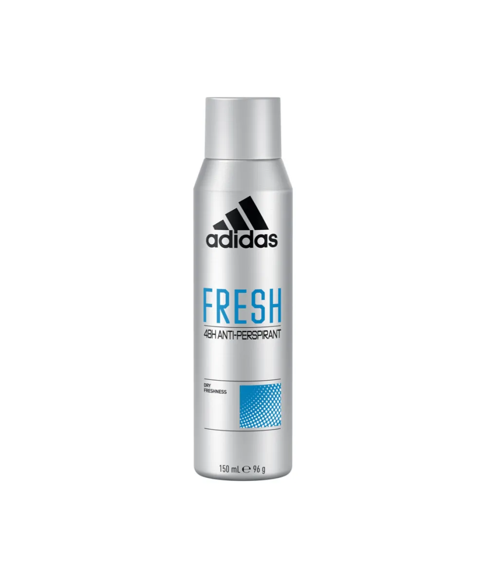 Spray Antitranspirante Adidas Fresh Para Hombres, Proporciona Una Protección Duradera De 48 Horas Contra La Humedad Y El Olor Corporal. La Fragancia Fresca, Compuesta Por Notas Aromaticas De Helecho Y Citricos Y Menta, Es Ideal Para Los Que Buscan Una Sensacion De Frescura Y Energia Durante Todo El Dia. La Formula Esta Dermatologicamente Probada, Vegana Y Sin Alcohol.