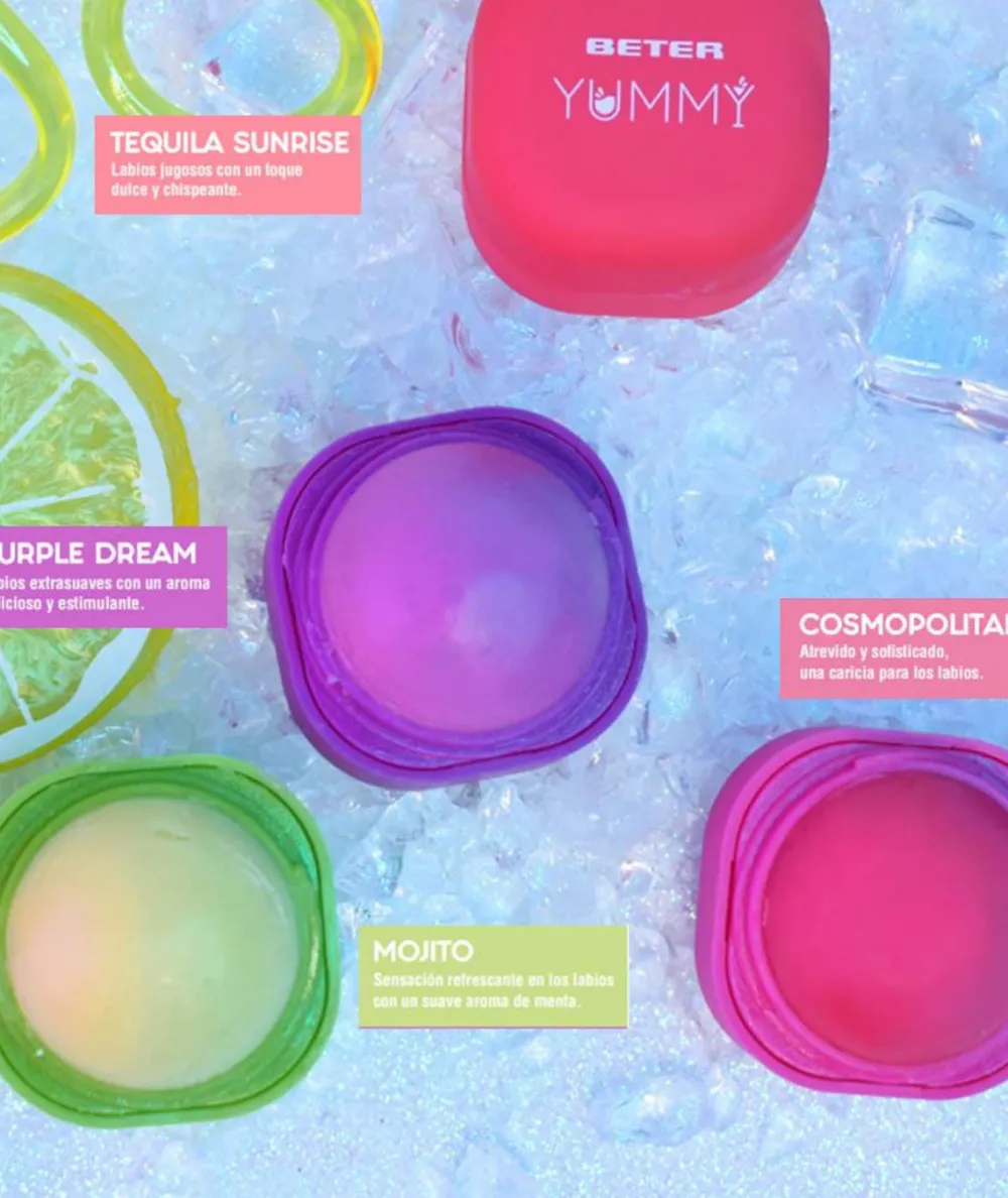 Balsamo Labial De Textura Suave Que Se Funde Con Tus Labios Para Un Acabado Jugoso Y Ligero. Formula Con Un 95% De Ingredientes Naturales: Aceite De Almendras Dulces, Cera De Candelilla, Manteca De Karite. Transparente · Textura No Pegajosa. La Coleccion De Balsamos Labiales Yummy Se Compone De Aromas Inspirados En Deliciosos Cocktails. Purple Dream Deja Unos Labios Extrasuaves Con Un Aroma Delicioso Y Estimulante.
