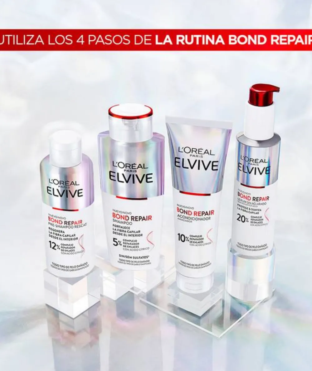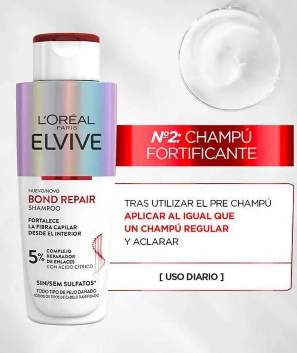 Limpia Y Fortalece La Fibra Capilar Desde El Interior Con El Champú Fortificante Elvive Bond Repair De L’Oreal Paris, El Paso Nº2 De La Rutina De Reparacion Capilar Desde El Interior, Consigue Un 82% Mas De Enlaces Capilares Reconstruidos Y Un 98% Menos De Rotura. Para Todo Tipo De Cabello Danado.