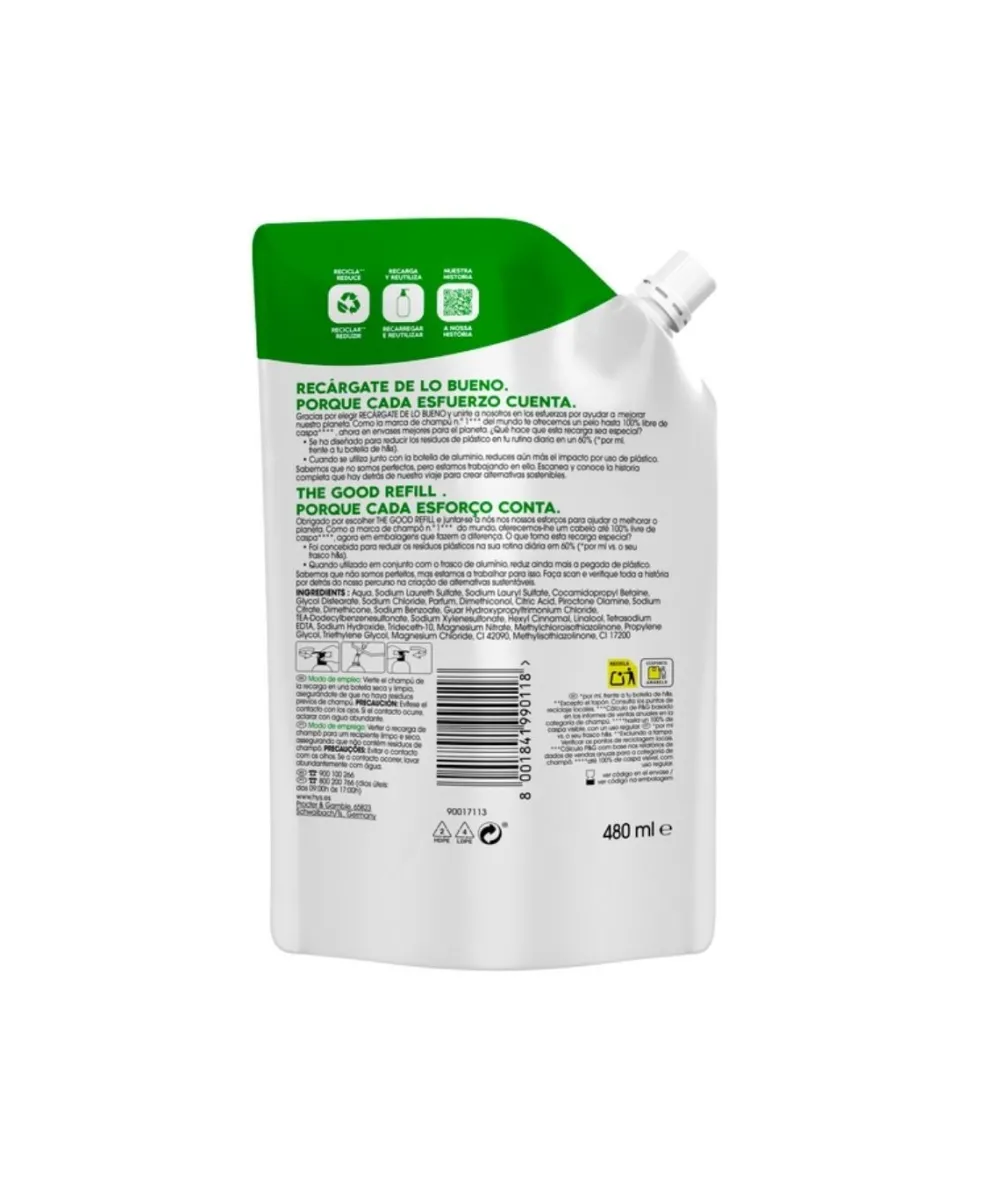 H & S Champú Clasico Anticaspa Refill 480 Ml| Champú