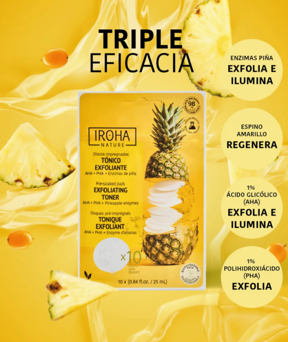 IROHA NATURE Tónico Exfoliante Discos Pina 10 Und.| Tónico Facial