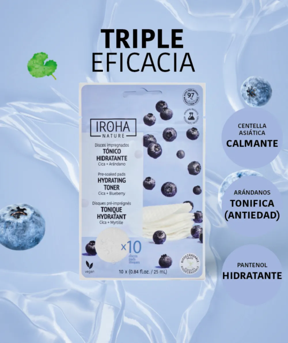 IROHA NATURE Tónico Hidratante Discos Cica 10 Und.| Tónico Facial