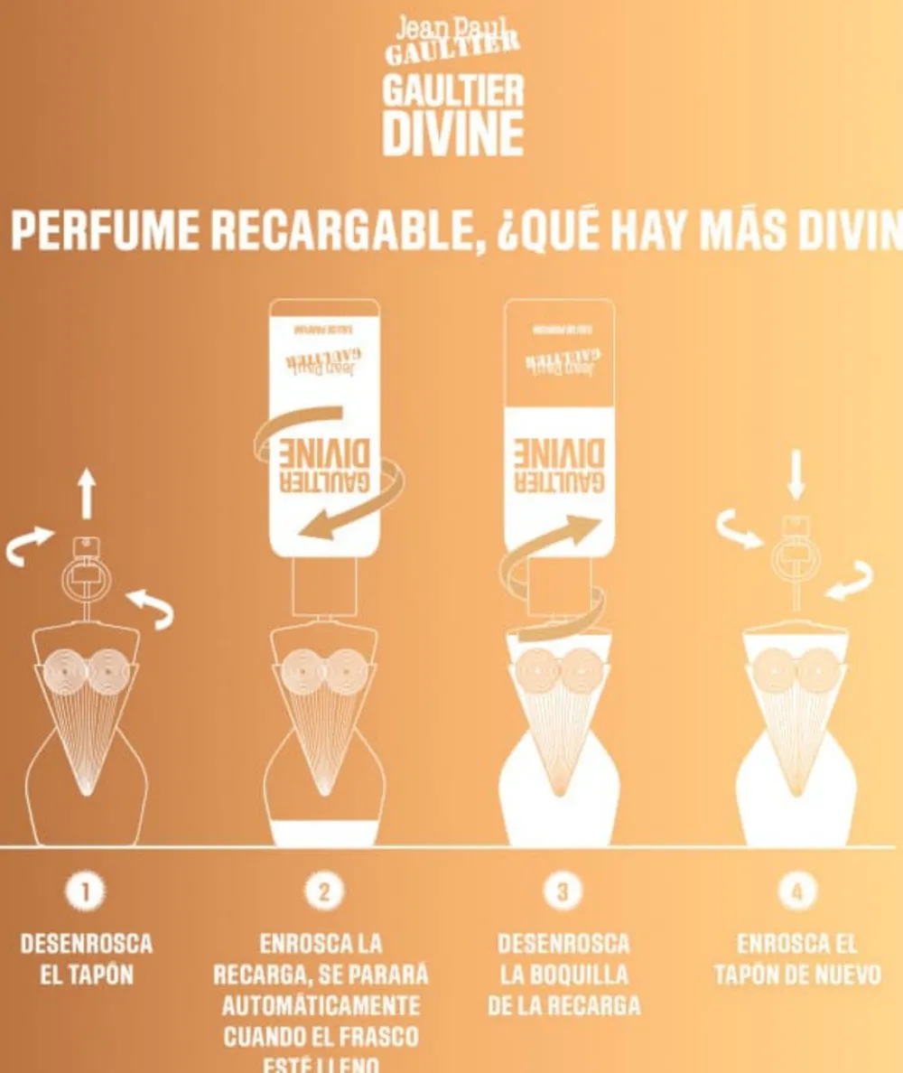 Ya Esta Aqui Gaultier Divine, La Nueva Fragancia Femenina De Jean Paul Gaultier.Desde 1976, Jean Paul Gaultier Celebra A Todas Las Mujeres Con Valentia Y Pasion. Libres En Todos Los Sentidos. Perfectas Con Sus Curvas. Orgullosas De Ser Ellas Mismas Y Libres De Todo Tipo De Complejos. Por Ello Gaultier Divine Eau De Parfum Es Un Tributo A Todas Las Mujeres. Es Una Exquisita Fragancia Floral Marina Creada Por Quentin Bisch. Un Lirio Espectacular Y Unico De Gaultier Irradia Majestuosidad En El Corazon De Un Ramo De Flores Blancas. Acompanado Con Delicioso Merengue E Impregnado De Una Brisa Yodada. Con Esta Irresistible Fragancia Floral Marina, Brillaras Con Tu Deslumbrante Poder. ¡Ahora Eres Divine!. Los Frascos De 50 O 100 Ml Son Rellenables (No Es Rellenable El Frasco De 30Ml). Esta Recarga Ecológica Cuenta Con Un Sistema De Cierre Automatico De Rosca. Un Gesto Sencillo Pero Vital: 52% De Vidrio Y 66% De Metal Ahorrados Para Ayudar A Proteger El Medio Ambiente.