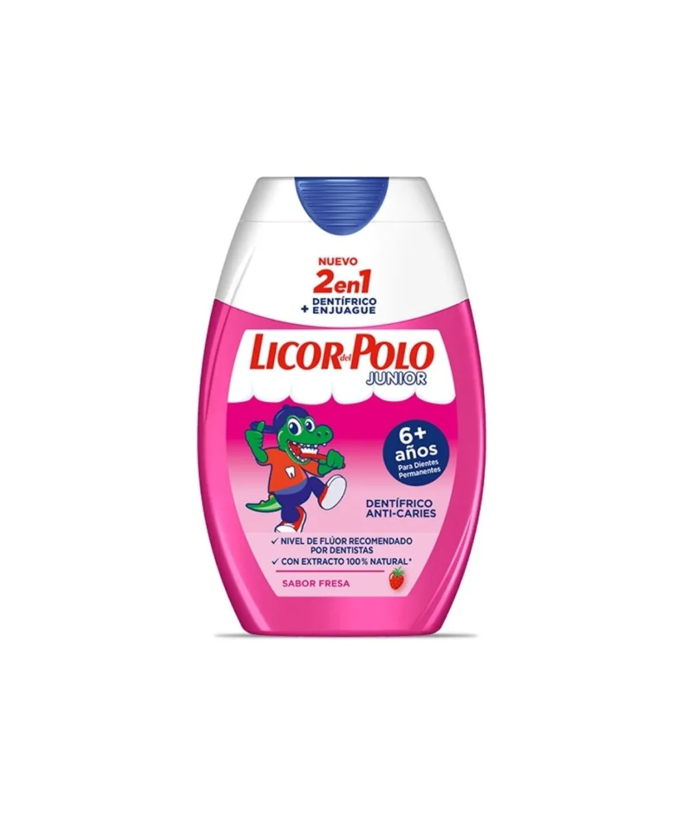 Pasta Dentifrica Para Ninos Mayores De 6 Anos, Con Sabor A Fresa. Enriquecido Con Fluor Y Disenado Especialmente Para Los Ninos. El Esmalte De Los Primeros Dientes Permanentes Es Susceptible A La Aparicion De Caries, Por Este Motivo Licor Del Polo Ha Disenado Una Formula Que Proporcionara A Los Mas Pequenos Hasta 12 Horas De Protección Contra Los Acidos Nocivos Del Azucar Que Proviene De Las Bebidas Y De Los Alimentos, Lo Cuales Son Los Causantes De Las Caries. Previene La Aparicion De La Placa Y La Caries. Contiene Calcio Y La Cantidad De Fluor Exacta Y Recomendada Por Los Dentistas Para Proteger De Forma Eficaz Los Dientes, Previniendo La Aparicion De Caries Y Plaza. Fortalece El Esmalte Dental De Los Dientes Y Mantiene Las Encias Sanas. Su Dulce Sabor A Fresa, Hara Del Cepillado Una Experiencia Agradable Y Divertida Para Los Ninos. 2 En 1, La Combinacion De Dentifrico Y Enjuague Bucal. Textura Mas Fluida, Facilita La Distribucion Durante El Cepillado.