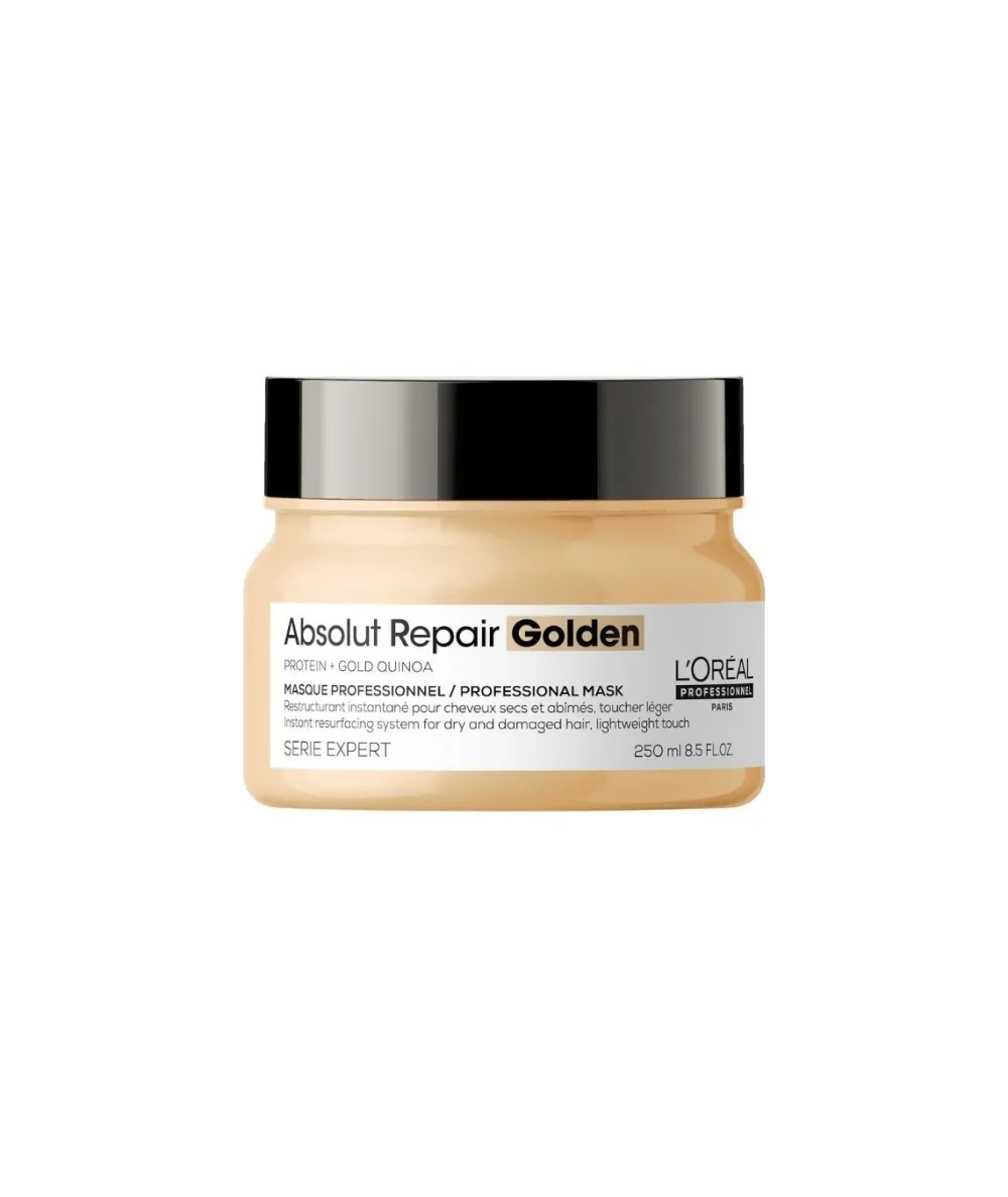 Mascarilla Dorada Reestructurante Instantanea. Nutre Tu Cabello Con La Quinoa De Oro + Proteina. Su Formula Profesional Y Dorada Restaura Instantaneamente Todo Tipo De Cabello Con Un Toque De Ligereza. Su Textura De Crema En Gel Deja El Cabello 7 Veces Mas Brillante Y Suave. No Deja Residuos En La Fibra Capilar. Ideal Para El Cabello Danado. Deja Un Toque Ligero, El Cabello Mas Reparado Y Menos Danado. Su Formula Contiene Proteina De Quinoa Dorada, Absolut Repair De L’Oreal Expert Reduce Ahora El Dano Superficial En Un 77% Y Deja El Cabello 7 Veces Mas Brillante, Y Con Un Acabado Ligero.